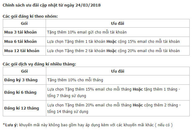 Zetamail cung cấp nhiều gói dịch vụ, phù hợp với nhu cầu của từng doanh nghiệp