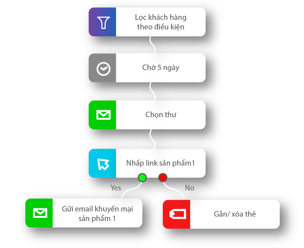 Đội ngũ marketing & IT kỹ thuật chịu trách nhiệm thiết lập & test thử hoạt động của các chuỗi email tự động.